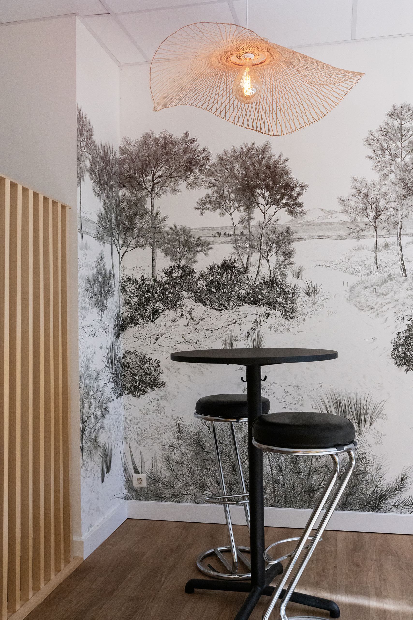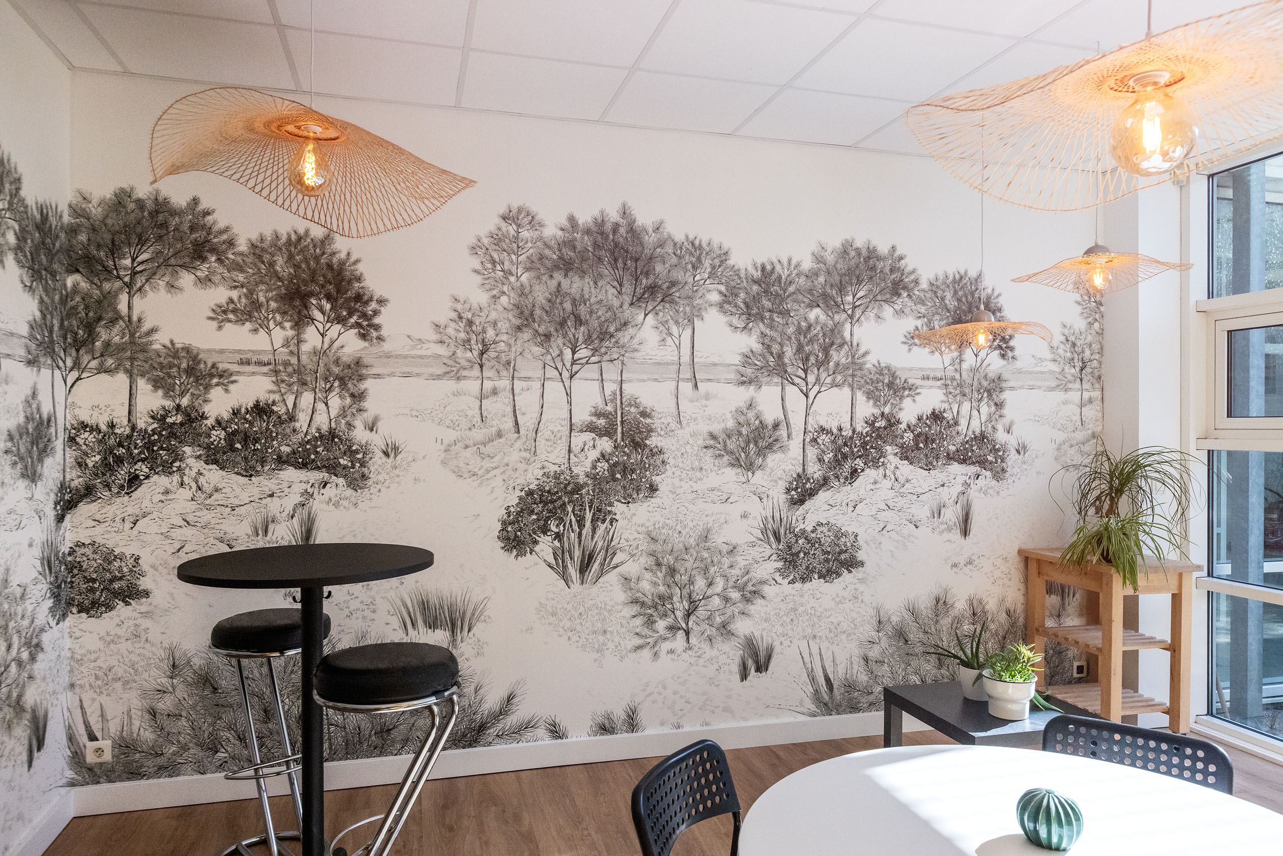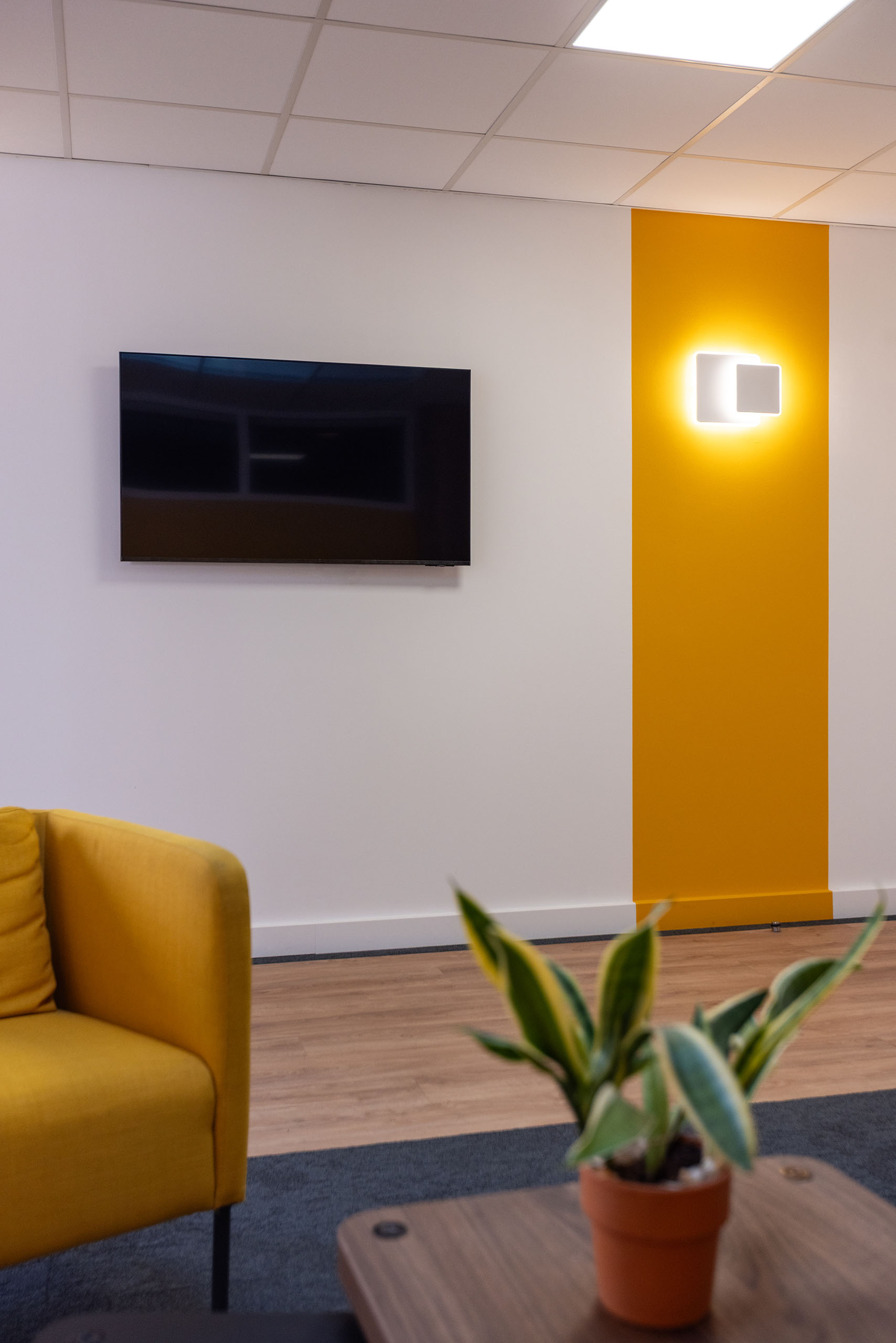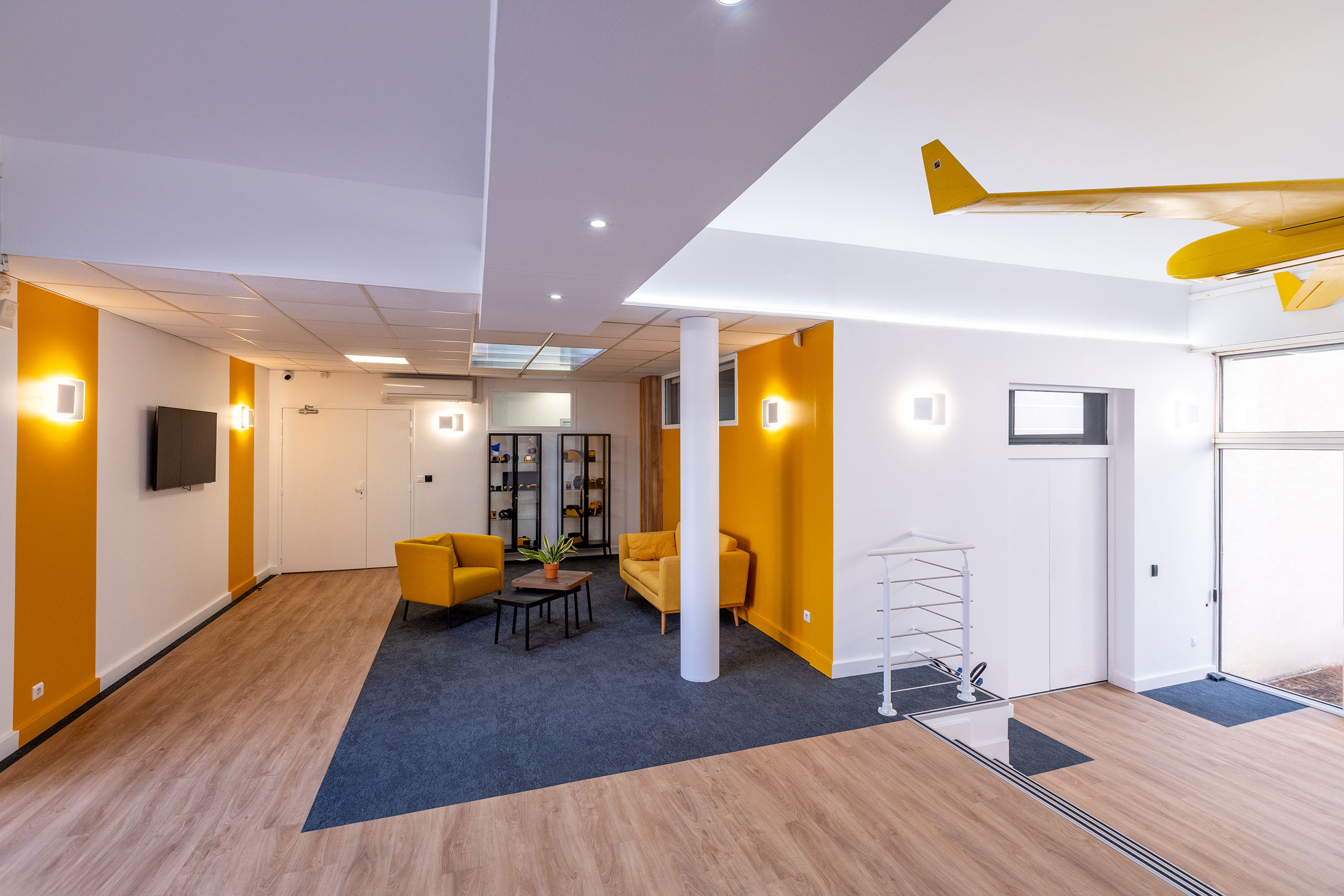 LHENRY Côté déco a accompagné la société YellowScan dans la réalisation d’un projet de décoration portant sur les parties communes de ses locaux, à savoir le hall d’entrée et la salle de restauration.